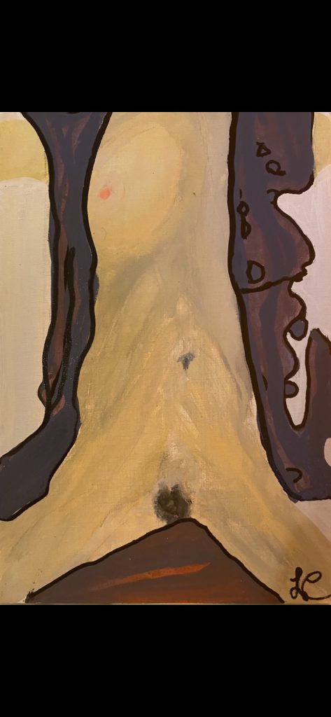De manière instinctive, j’ai peint sur la toile comme par magnétisme, de manière charnelle, brute, le ressenti du corps.